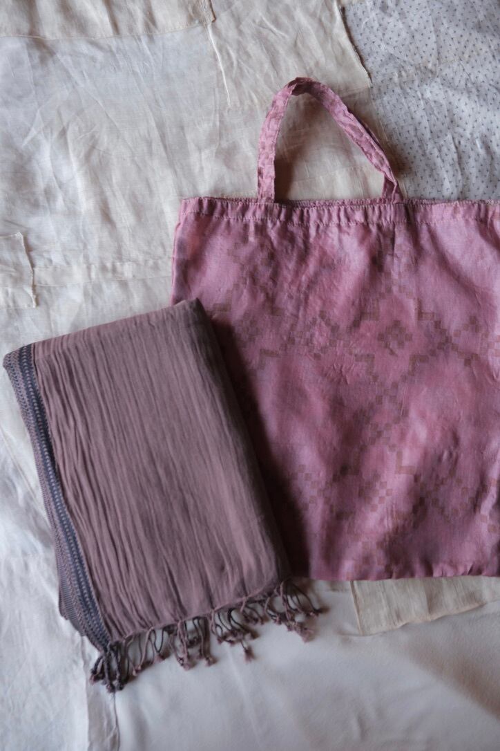 ・アーユルヴェーダ染めストールとサリーバッグSET