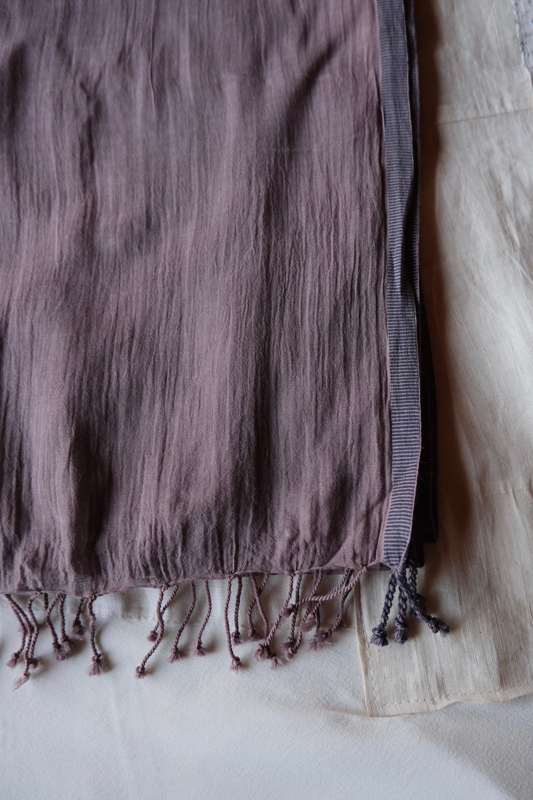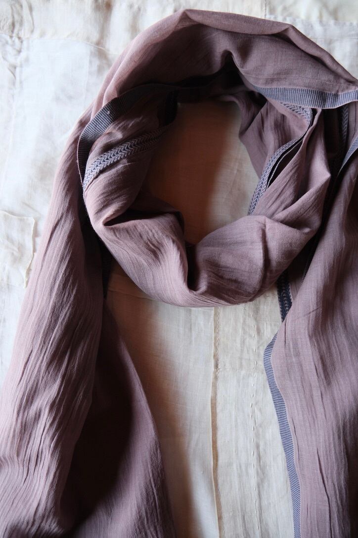 私が最初にお店で選んだストールは、とても薄く柔らかい、肌触り最高のインド産オーガニックコットンを染めたもの。