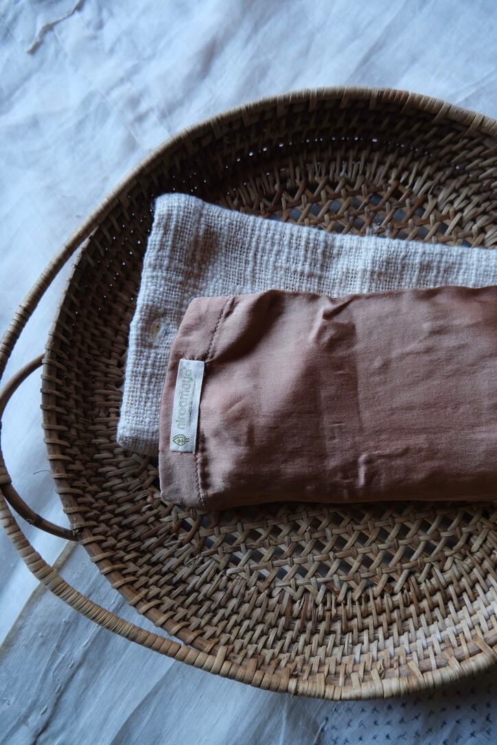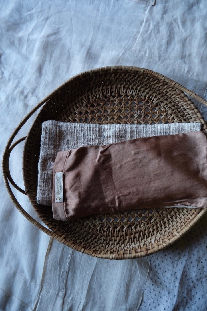 インド産マルベリーシルクに、トゥルシー(ホーリーバジル)の種を詰め込んだアイピロウです。