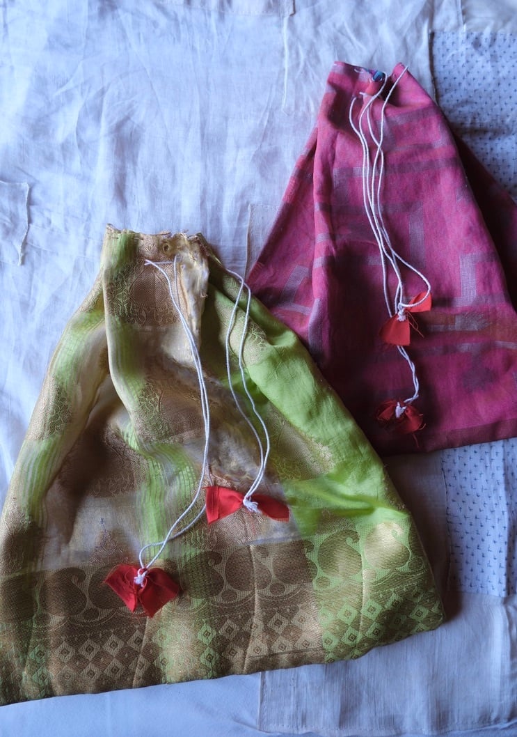 インドで見つけた大きめ巾着袋と一緒にお届けします。