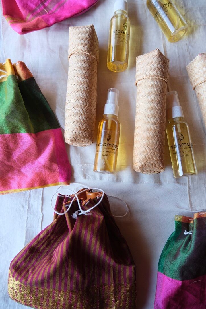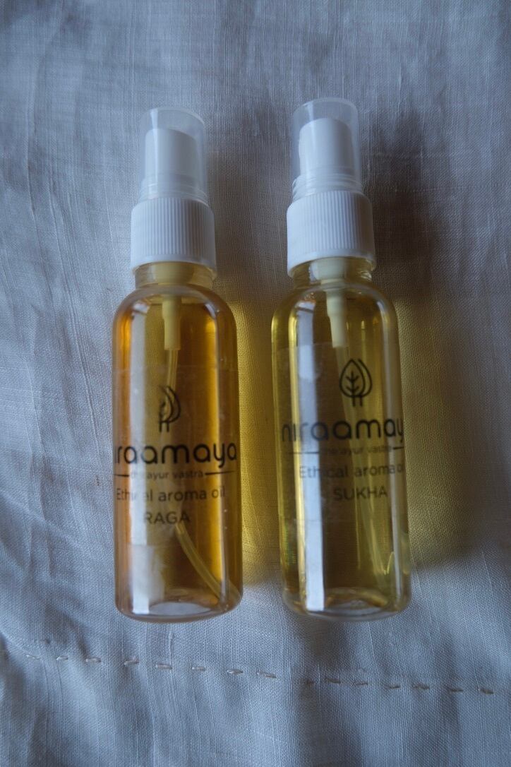使われている数種類のエッセンシャルオイルは、もちろんアーユルヴェーダの薬効があるものだそう。